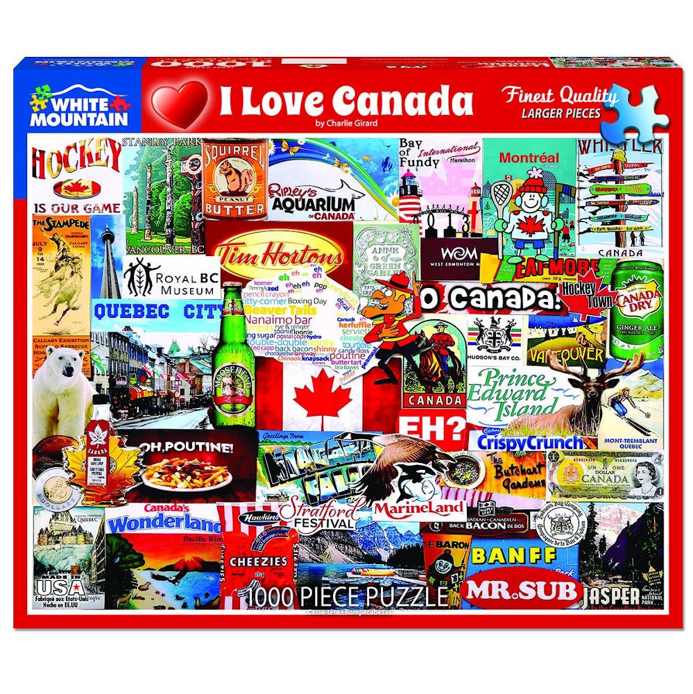 I Love Canada Puzzle features some of the wonderful places in Canada. On the eastern end the Canadian Maritime Provinces include Prince Edward Island, home of Ann of Green Gables, a beloved novel inspired by the author's childhood there. On the far western end is British Columbia, Canada's third largest province with a rugged coastline that includes deep, mountainous fjords and nearly 28,000 marine islands. In between is too much incredible geography and places of interest to describe here, all patrolled by the celebrated Royal Canadian Mounted Police.