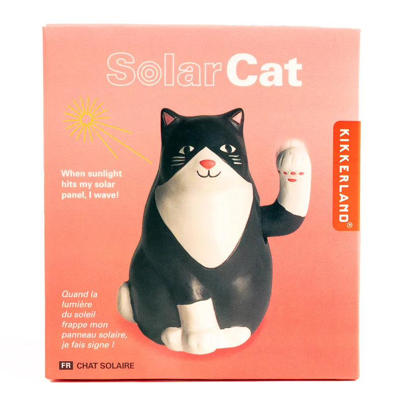 Inspired by the iconic Japanese lucky cat, this waving kitty is powered by the sun! Place her on your windowsill and her beckoning paw will wave and grant you good luck. Featuring a black and white tuxedo cat figurine.