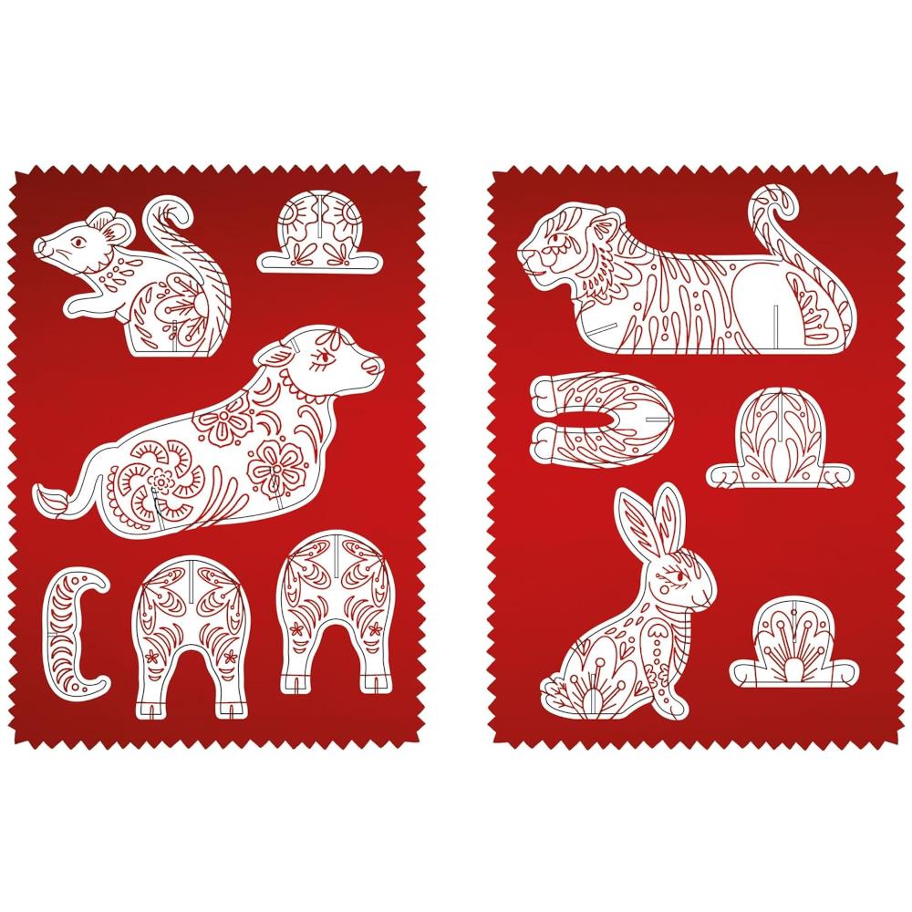 Make your own 3D decorations with this brilliant board book of press-out Chinese zodiac animals!From tigers to monkeys and horses to dragons, this book features 25 unique, intricately foiled designs that can be slotted together to create 3D ornaments, hung up or threaded together to make an amazing garland. Each page is covered in shiny red foil, with foiled pieces which can be pressed out and colored in to make a fun collection of personalized animals.