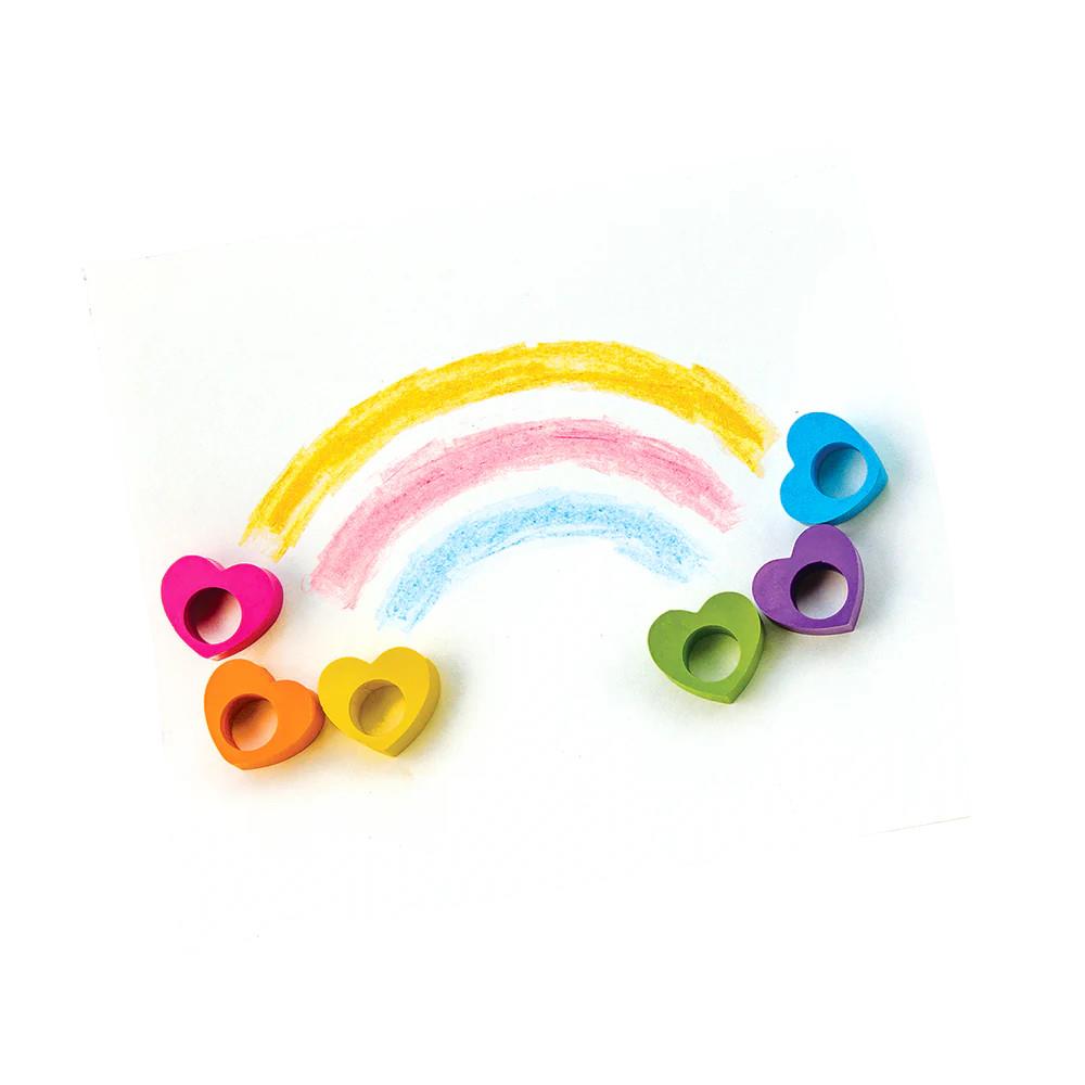 OOLY has taken wearable art to the next level with these ring crayons. Made in a sweet heart shape, this pack of six crayons can be worn like brightly colored jewelry - ensuring you are always ready with your art tools whenever inspiration strikes!We have no doubt that you will fall in love with these heart shaped crayons! Uniquely designed to function as a crayon AND a whimsical piece of jewelry, these fun ring crayons are a true conversation piece! With six crayon rings in all— in pink, orange, yellow, green, blue, and purple—you’ve got every color in the rainbow right at your fingertips. This is an unforgettable gift for that creative and spirited kid who appreciates things designed to work well while making you smile.