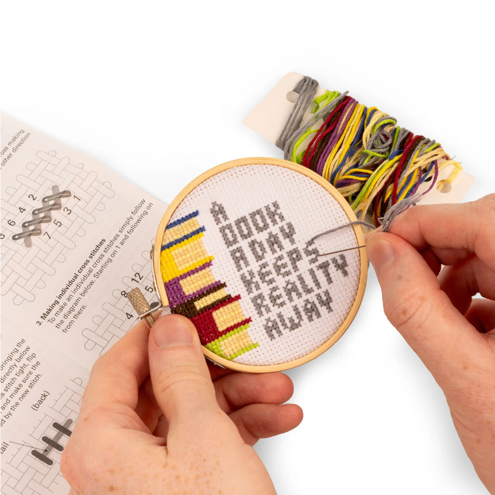 Relax at home or at work with the craft of embroidery. A great kit for beginners! Includes: 3" bamboo hoop frame, 4.3" square canvas to stitch on, color threads, and 1 needle. Plus one pattern guide and helpful tips on getting started. Happy stitching!