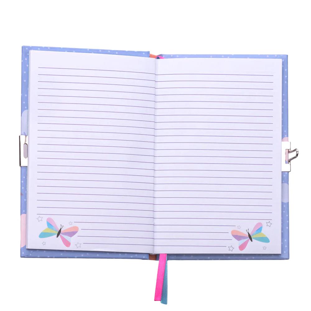 Wow…a SCENTED and SECRET locking diary. This Fantasy themed locked secret diary smells of Pineapple. Simply scratch the cover and you will reveal the scent. Includes a padlock and key AND a fun shaped sticker sheet withMermaids, Unicorns and much more. There are multi colour ribbon page holders too. Pages are lined. Perfect for travel and taking out and about.