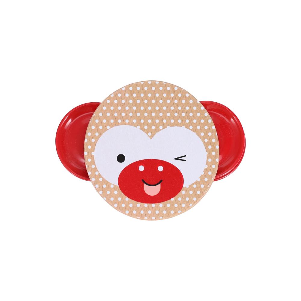 Shake to make music while you play with this Wooden Tambourine!Introduce your little one to the joys of creating rhythm and sound! Featuring a happy smiling monkey on one side and a cheeky winking monkey on the other, this easy-to-play mini musical instrument is a great place to start for musicians in the making.