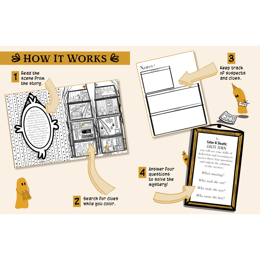 With the Color & Sleuth: Ghost Town, you can enjoy a unique and immersive experience that combines the relaxation of coloring with the thrill of mystery-solving in a whimsical, haunted world!