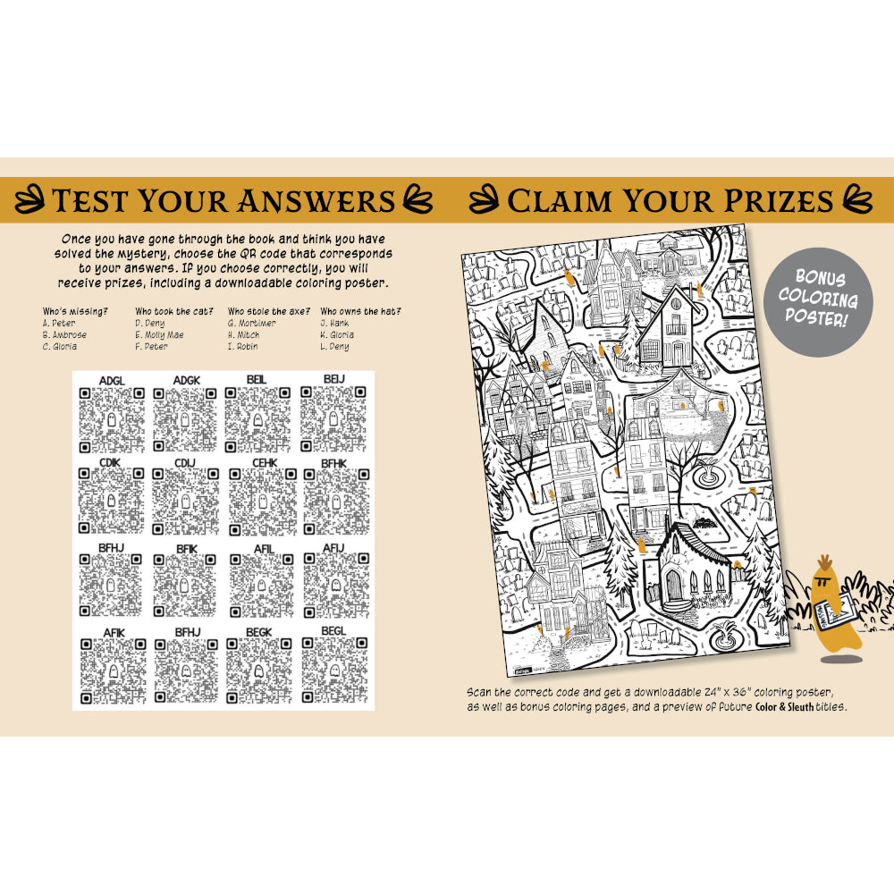 Immerse yourself in an interactive coloring mystery!Color & Sleuth: Ghost Town by Rebecca Demos is an engaging and interactive coloring book that invites you to dive into a charming, ghostly town filled with adorable characters and curious clues. With each detailed coloring page, you will explore creepy-cute scenes from a haunted suburban setting, all waiting to be brought to life with color and creativity. Alongside each coloring image is text describing an eerie scene from the story that holds clues to the mystery, adding a layer of intrigue to each page.As you color and read the scenes, you will gather hints to help you answer four key questions to unravel the mystery haunting this cozy ghost town. By solving the puzzle correctly, you will unlock downloadable rewards such as exclusive posters, bonus coloring pages, and sneak peeks at future books in the Color & Sleuth series, making the experience both rewarding and interactive. Adding to the immersive nature of the book, a QR code links to a curated soundtrack to enhance the spooky, whimsical atmosphere, making Color & Sleuth: Ghost Town a perfect blend of art, puzzle-solving, and storytelling.Inside, you will find: