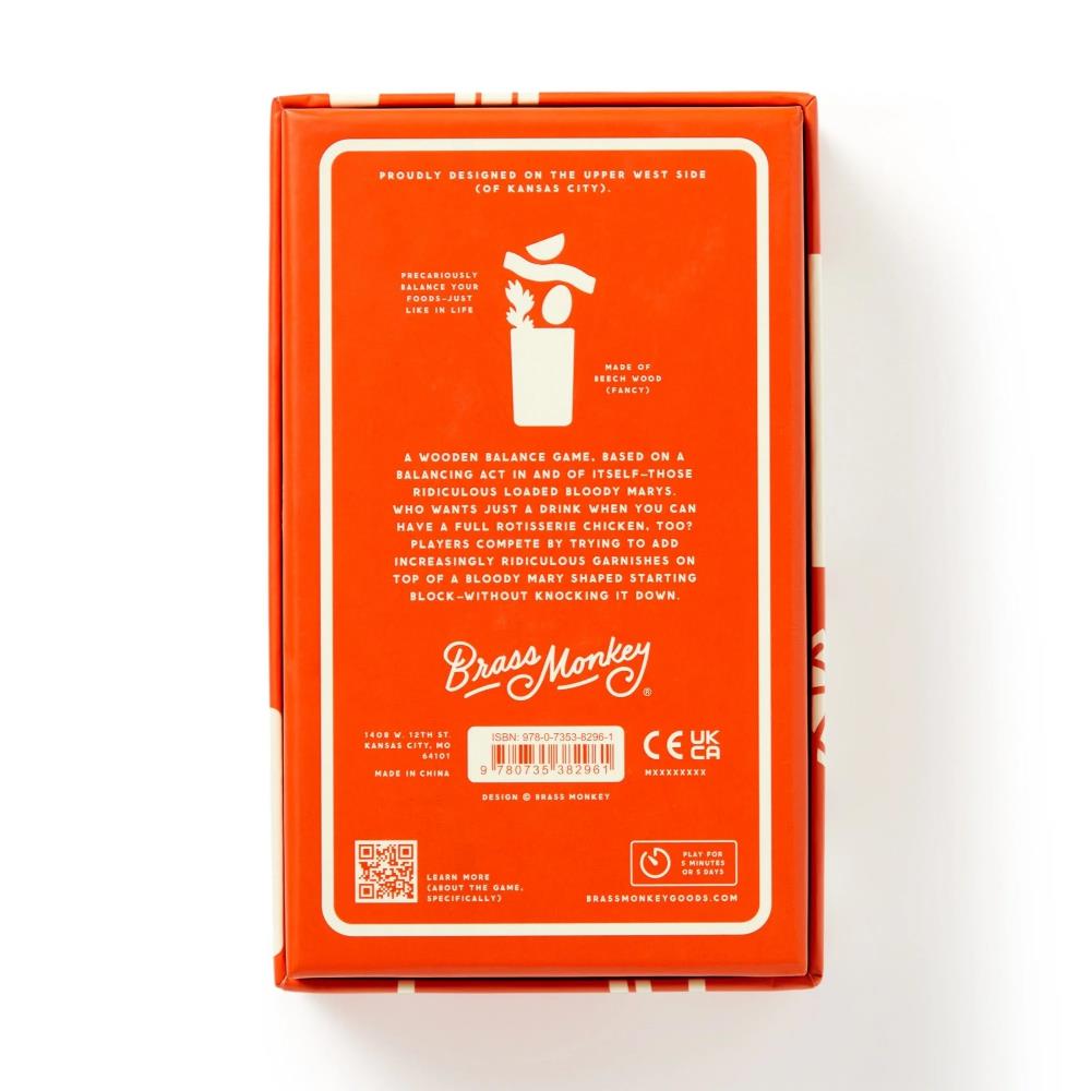 A balance game, based on a balancing act in and of itself–loaded bloody marys at a bottomless brunch. The sheer amount of ridiculous items we’ve seen piled on top of Bloody Marys never cease to amaze us–so we turned it into a game.Players complete by taking turns adding increasing ridiculous garnishes on top of a Bloody Mary shaped starting block–as they try not to be the one that knocks it all down. Includes 10 wood game pieces with double-sided printing and instruction sheet.
