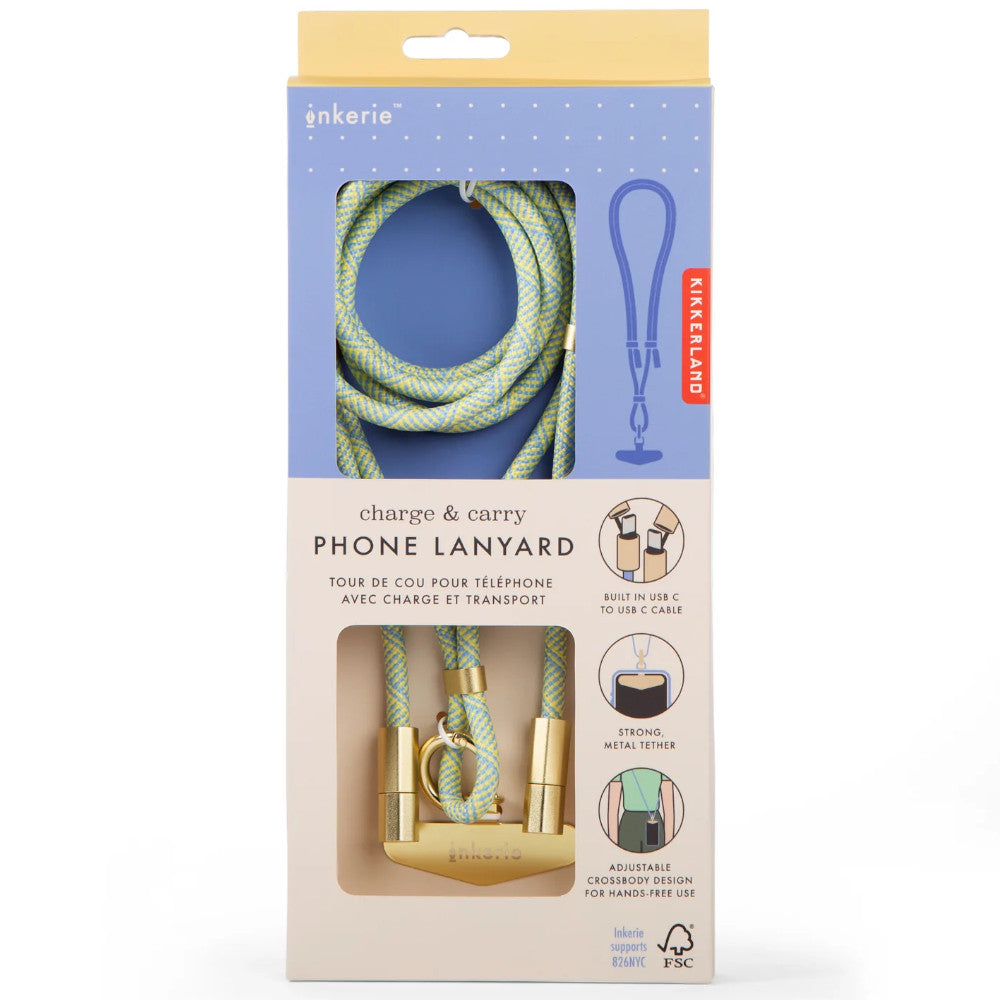 Adjustable hands-free phone holder doubles as a charging cord! Wear it around your neck or shoulder while on the go. Type C to Type C charging cable.