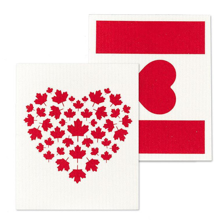 Show your love of Canada with this fun set of Canada Flag & Heart Amazing Swedish Dishcloths. A 100% biodegradable cotton/cellulose mix, these reusable Swedish-made dishcloths are as durable as they are eco-friendly. Each one replaces up to 15 rolls of paper towel – great for use at home, the office or at the cottage. Washing machine and dishwasher safe.