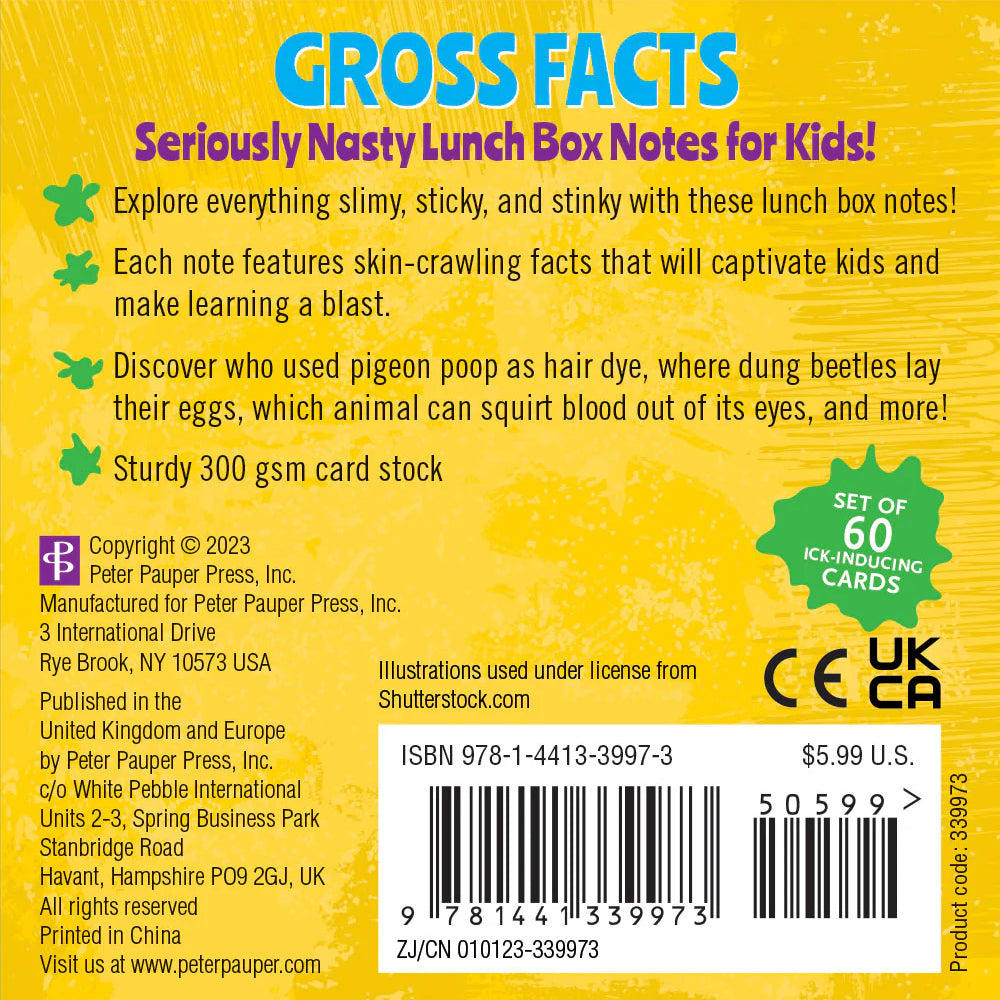 Fun and fact-filled lunch box note cards will acquaint kids with everything slimy, sticky, and stinky!