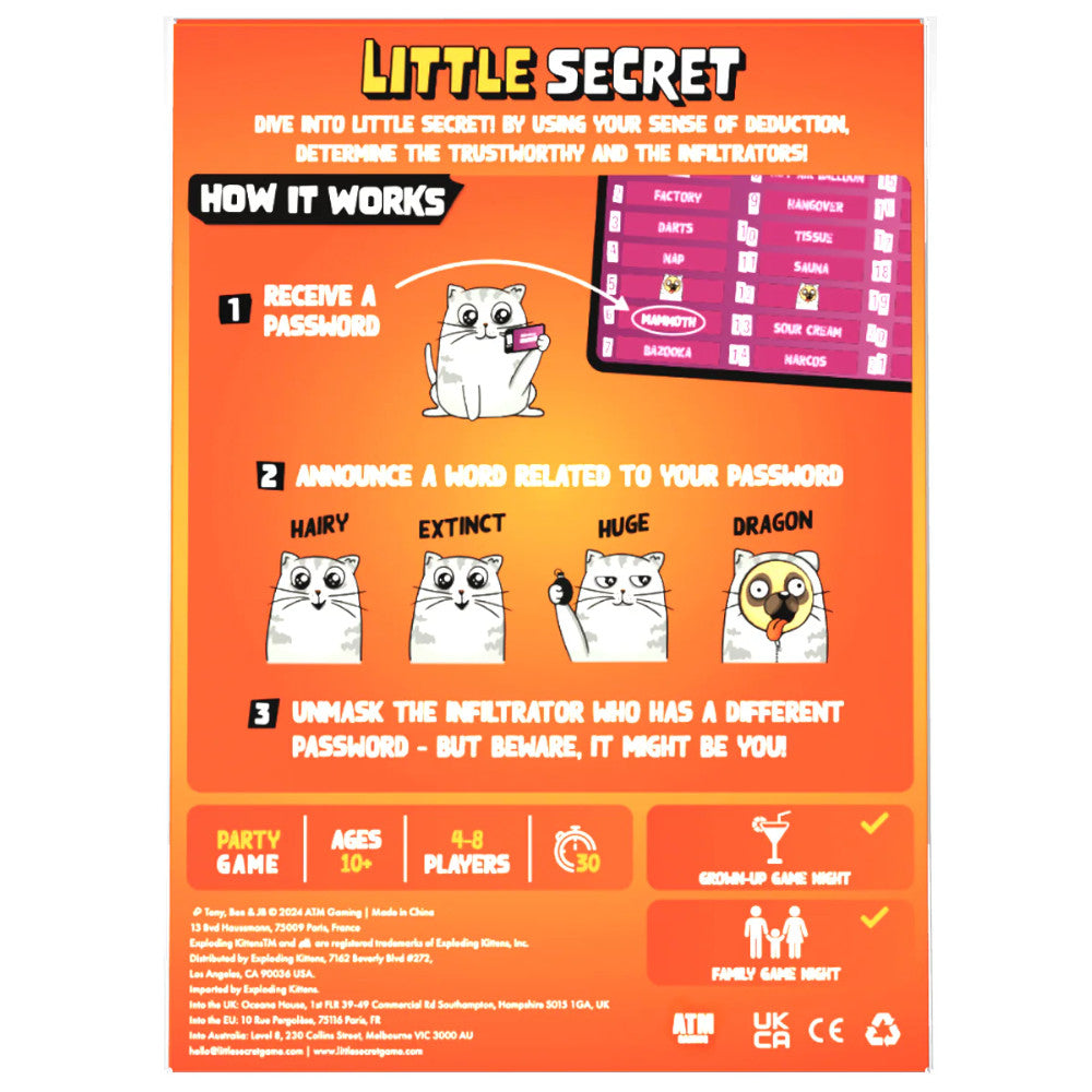 Easy to learn, quick to play, and endlessly entertaining, *Little Secret* will have everyone on the edge of their seats.