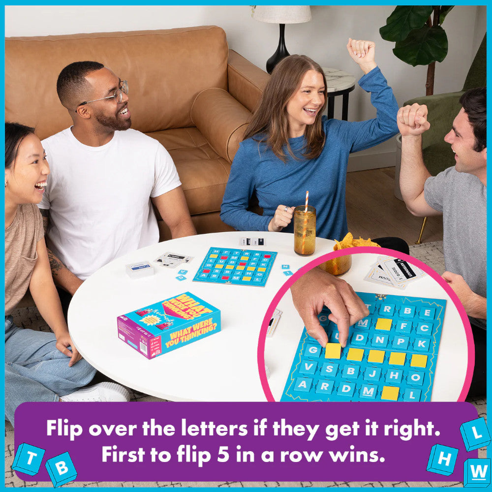 The Guessing Game For Horrible Mind Readers. Can you give the perfect clue before anyone else? What Were You Thinking? is as fun to watch as it is to play. This board game makes you flex your creativity to think up unique (or outrageous) clues. But it's also an easy-to-learn and simple-to-play strategy game that's different every time you play. It's perfect for family game night, party ice breakers, and playing with friends.