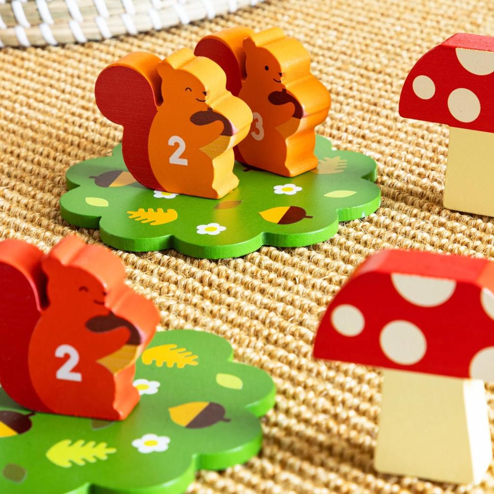 A counting game for sneaky squirrels!Jump, jump, jump from one mushroom to the next! Use your counting skills to jump your squirrels along the path to reach their nesting tree. But watch out for the sneaky squirrels on the other team who will try to make you fly!
