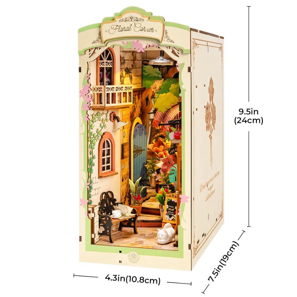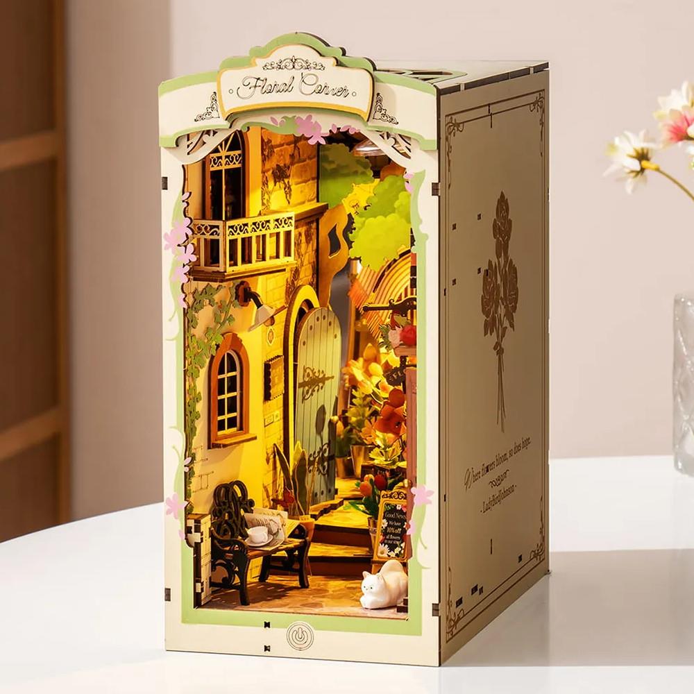 Be enchanted by a realistic flowery oasis between your books through Rolife Floral Corner. Experience a Wonderland Miniature Flower Shop In Your Library.