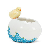Elevate your home decor with this adorable Chick on Egg Bowl/flower pot. Crafted out of white ceramic, this egg-shaped planter with beautifully painted details is accented by a charmingly sculpted chick to complement your favourite springtime blooms.