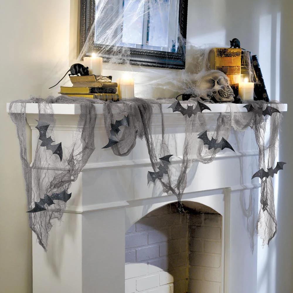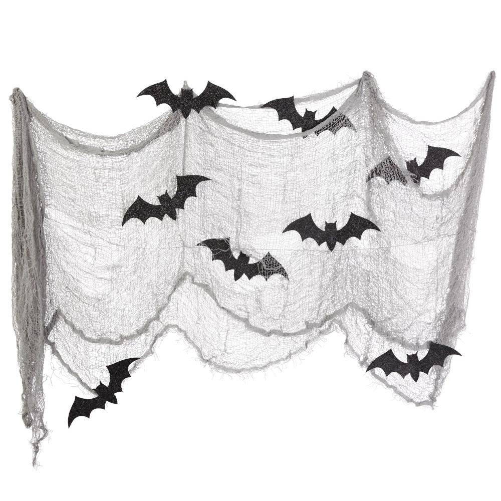 Contents:1 Piece of Gauze, 15' x 2'8 Glitter Black Paper Bats, 4" x 10"
