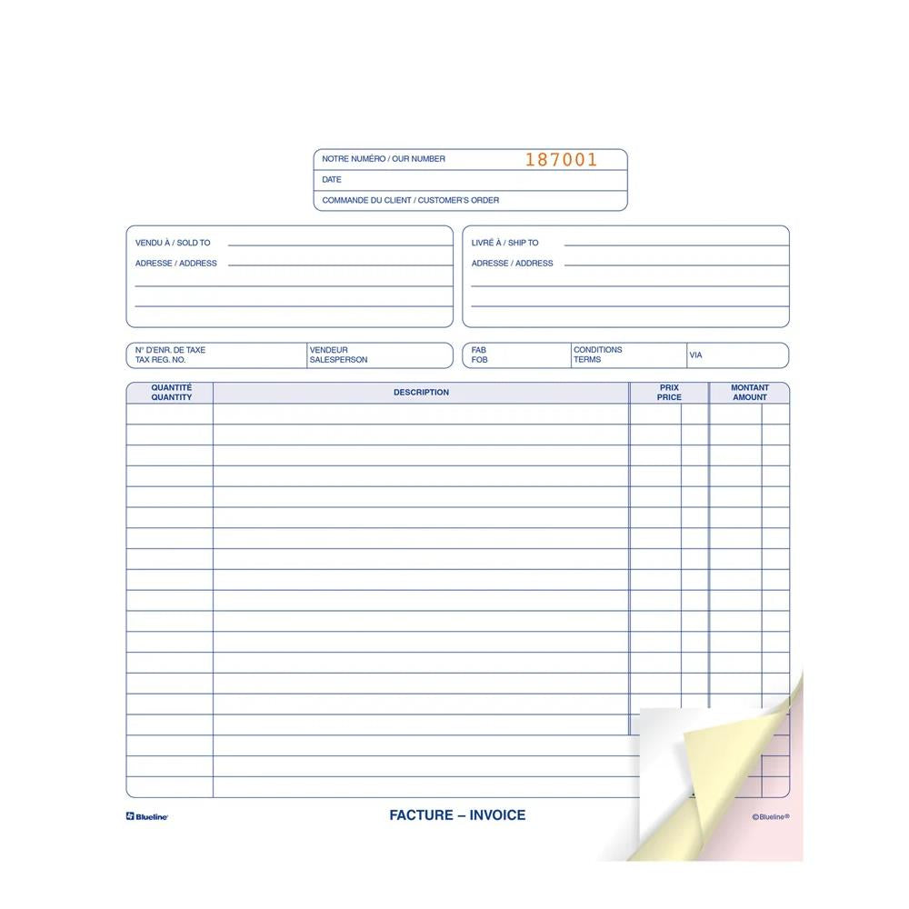 Keep a running record of invoices, so the numbers are at your fingertips when you need them!This Carbonless Invoice Book is perfect for small and large businesses. Crafted from a durable and flexible blue cover, it includes your business name, the date of supply, description of product or service and the price.Blueline's business forms represent the most professional way to do business. All Blueline carbonless business forms are manufactured with high-quality papers for a sharp and clear image reproduction, faithful to the original. Made in Canada.
