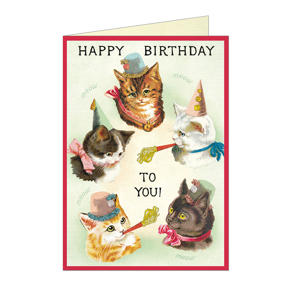 Happy Birthday Cat Party Single Greeting Card & Envelope