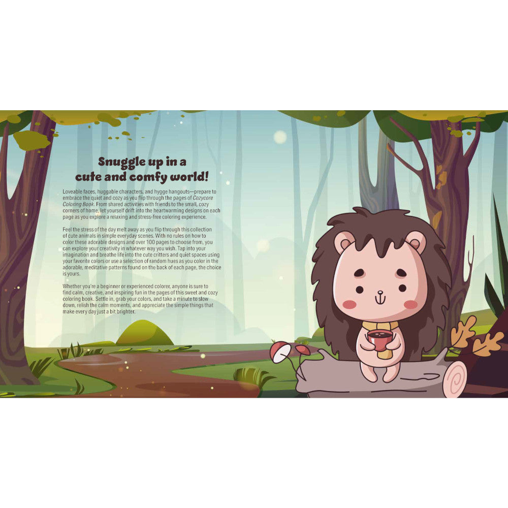 Colour the Joy in Everyday Moments with Everything Cute and Cozy! More Than 100 Pages to Colour. Loveable faces, huggable characters, and hygge hangouts—prepare to embrace the quiet and cozy as you relax your way through the pages of Cozycore Coloring Book.