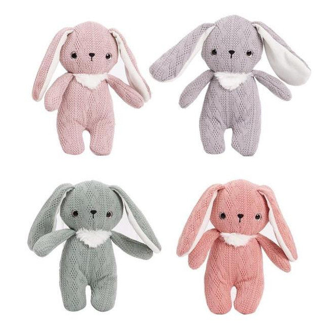 These lovely long-eared bunny rabbit friends are a perfect gift at Easter or any time. They feature soft quilted fabric and a tuft of fur under their chin.