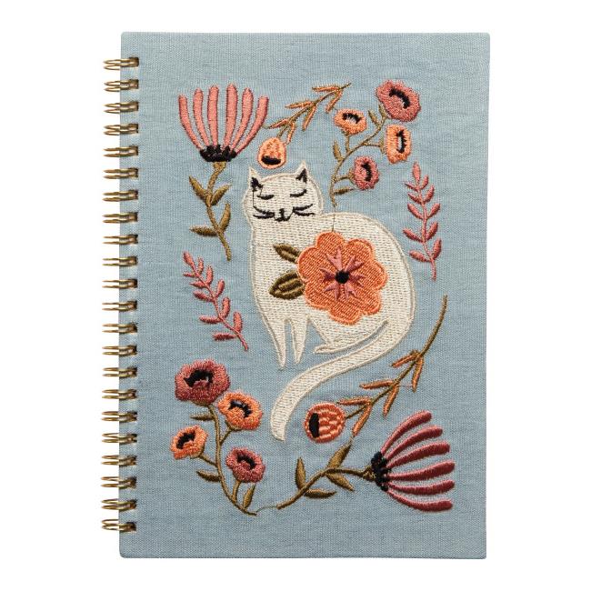 The embroidered cover of this ring bound notebook is sure to prompt inspired ideas to fill the pages within.Catbloom offers a cat's eye perspective of these sly stewards of gardens. Uninhibited by fences, fancy floral felines explore the world on their own terms.