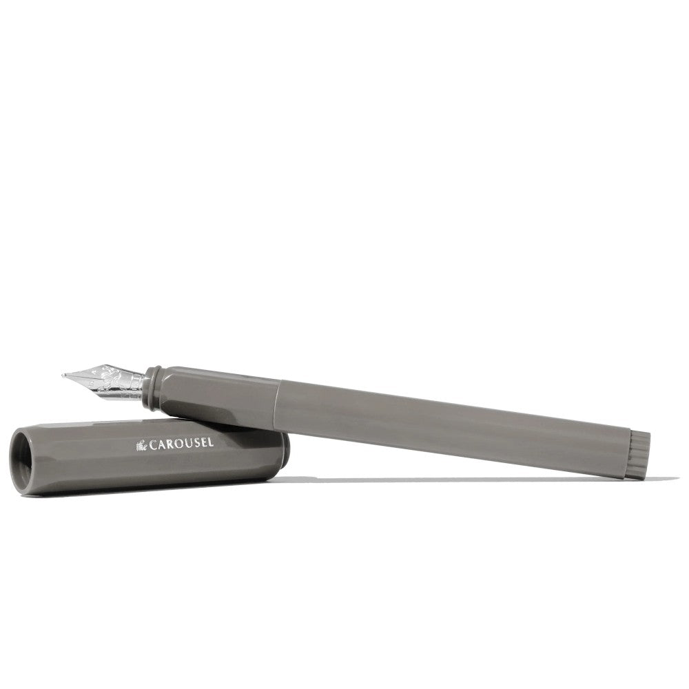 The Carousel is a joyous writing instrument that combines tactility and nostalgia in a lightweight body to create a charming experience with every single detail. The all new custom-ground steel nib is playful and agile, able to produce beautifully nuanced lines with its subtle flexibility. The fine nib is stamped with a galloping horse that dances to your every word.Each Carousel fountain pen comes equipped with its own ink converter, ready to be filled and refilled all over again with your favourite Ferris Wheel Press Ink.Features:
