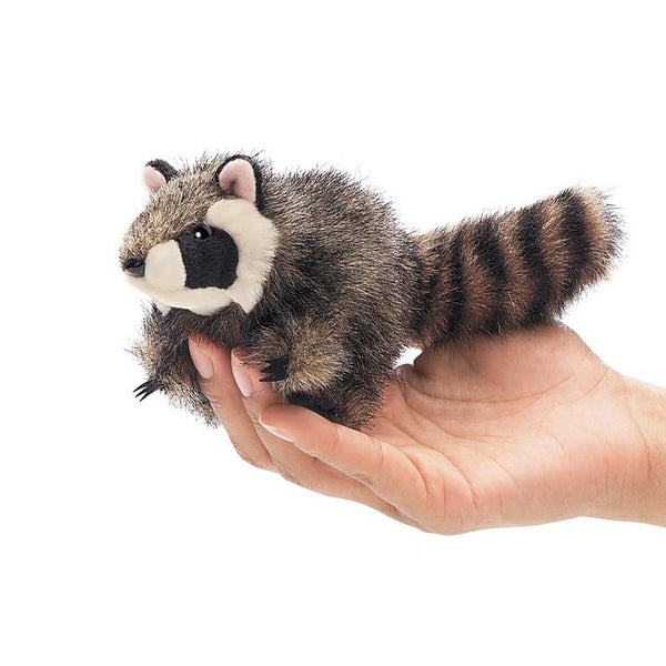 This stripy-tailed, masked bandit and raider of garbage cans sits perched to steal your heart. From his clever paws to the end of his bushy tail, this Raccoon finger puppet has the classic look of the always-in-trouble, but too-cute-to-punish.