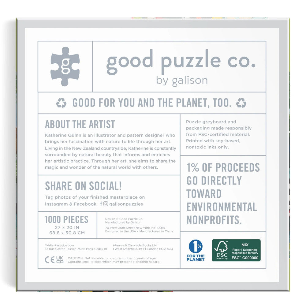 The Good Puzzle Co. brand by Galison are printed with soy-based nontoxic inks. The puzzle pieces and packaging are made from Recycled FS-certified material. Good for you and the planet, too. 1% of proceeds go directly towards environmental nonprofits.