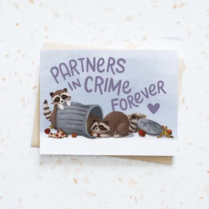 Featuring hungry trash can raccoons and a playful message for your partner, bestie or other loved one. This digital illustration is printed locally in Calgary, Alberta.