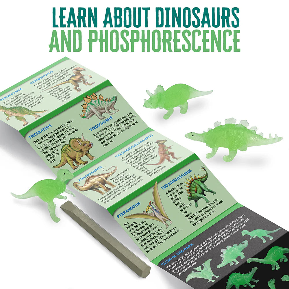 A fun twist on classic dino dig-outs, these plaster eggs hold dinosaur models that glow in the dark! Sold individually and blind-packed, each egg contains one mystery plastic dinosaur model, so it’s a surprise which of the eight dinosaur figures you will get! A small chisel tool for digging the dino out of the egg and an instruction manual are included.