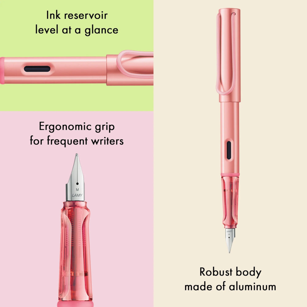 The Lamy AL-Star is a writing classic made of resistant aluminium, that masters all challenges of everyday life in style. The transparent grip lies comfortably in the hand and, with an unobstructed view of the ink duct, turns the functional into a visual highlight.
