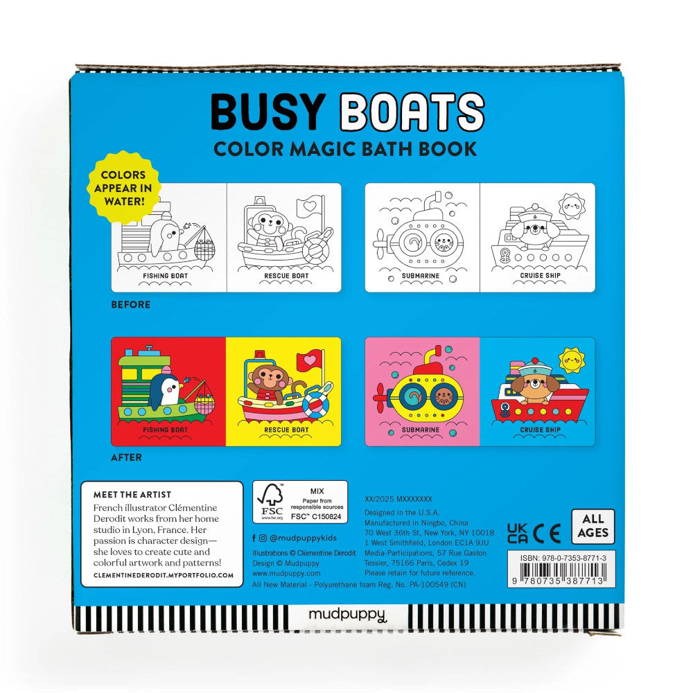 Set sail for splashy fun with this magical colour-changing bath book! Clementine Derodit's charming busy boats come to life when water touches the pages, revealing hidden colors and nautical surprises. Little explorers will love discovering what appears as they play, turning ordinary bath time into an interactive voyage of discovery. Waterproof and built to withstand enthusiastic water play, it's the perfect way to keep kids entertained while getting clean.