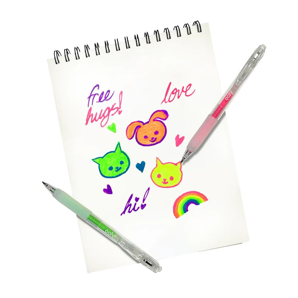 Neon gel pens that raise the bar. Give your crafts a glow-up with the Jelly Gloss Neon Multi-Surface Deco Gel Pens! This set of six neon coloured gel pens is perfect for adding bold, raised designs that stick out (literally). They work wonders on glass, plastic, and other non-porous surfaces—perfect for turning jars into jam-packed party decor or customizing phone cases to make them totally "case-tomized". Not stopping there, these multi surface pens dazzle on black and white paper, making even your doodles pop with pizzazz.Featuring retractable tips and a comfy grip, these pens put the “fun” in functional. The glossy, dimensional ink adds a raised texture that makes every design feel like a masterpiece—just give it a minute to dry before you show it off. Whether you’re jazzing up gifts, sprucing up party crafts, or turning everyday items into objets d'art, these deco pens are the perfect pick for craft enthusiasts who like their projects bold and brilliant.