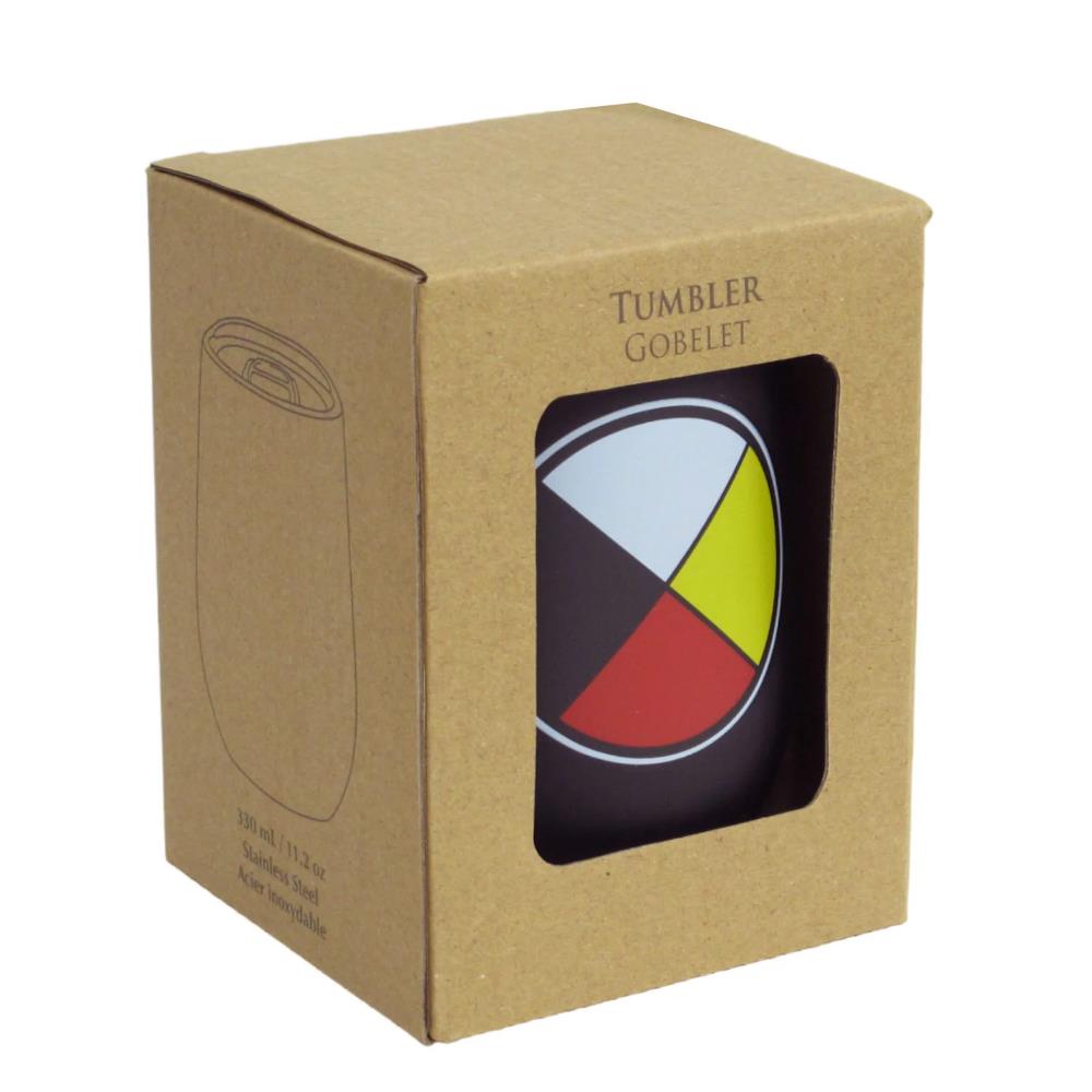 Medicine Wheel, also known as Sacred Loop, symbolizes the Circle of Life. As well known the circle represents perfection as well as infinite since the circle has no beginning or end. Interpretation of the Medicine Wheel differs from Nation to Nation.Tumblers are double-walled and made of stainless steel. They come with clear spill-proof lid with easy slider for drinking. The rubber paint finish give a unique elegance and excellent grip.