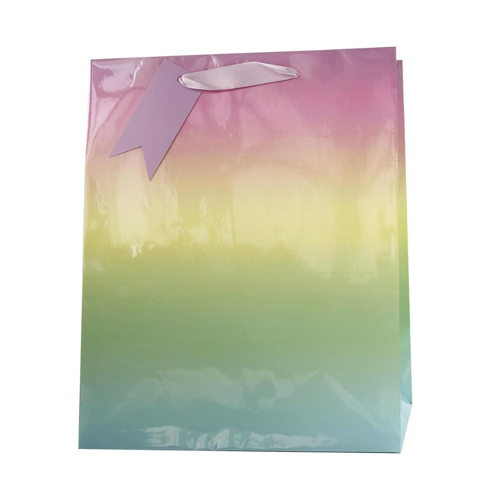 Perfect for all sorts of gift-giving occasions, this large-sized gift bag features a pastel coloured ombre pattern.