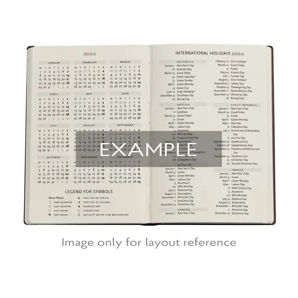 MORE FEATURES: Monthly plannerConversion tablesYear plannerInternational dialling codesMini calendarsInternational holidaysWorld time zonesNote-taking pagesAddress book insertName plate