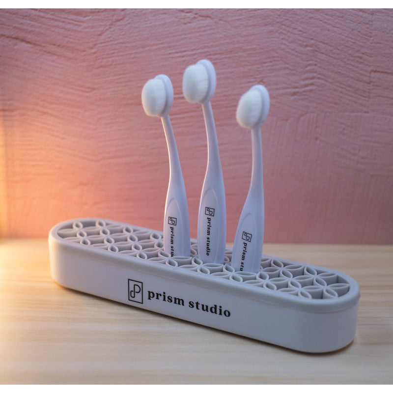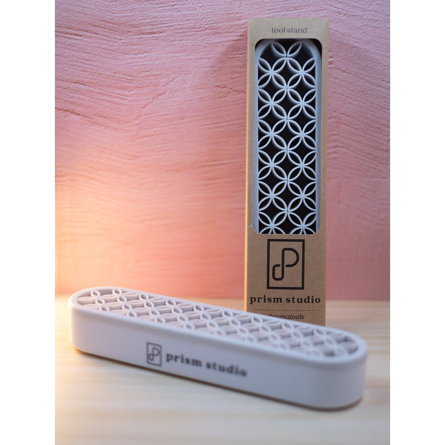 A flexible, silicone tool stand that holds your art, writing, and craft tools upright and firmly for easy organization and access. The clever design features a geometric pattern of flexible silicone that forms slots to fit tools of different sizes. Minimize clutter on your work surface while keeping tools handy.