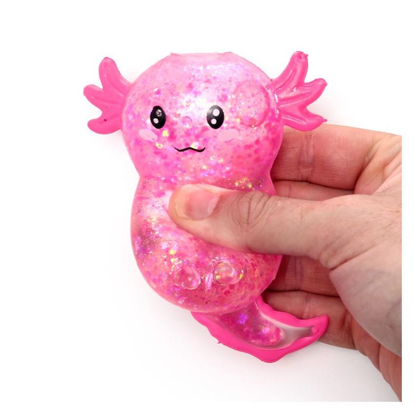 Adorable, Squeezable Glitter Axolotl Stress Toy