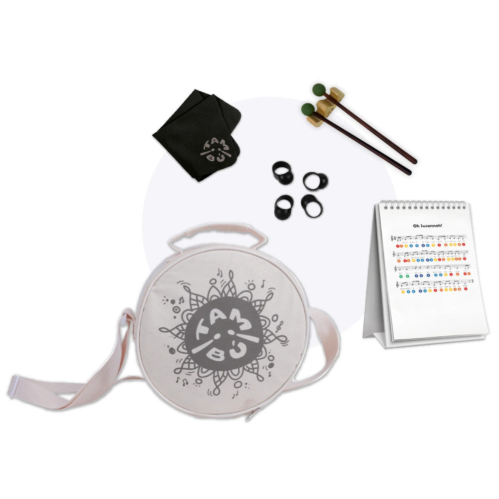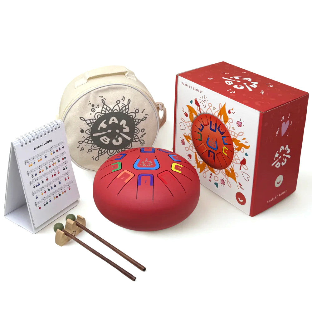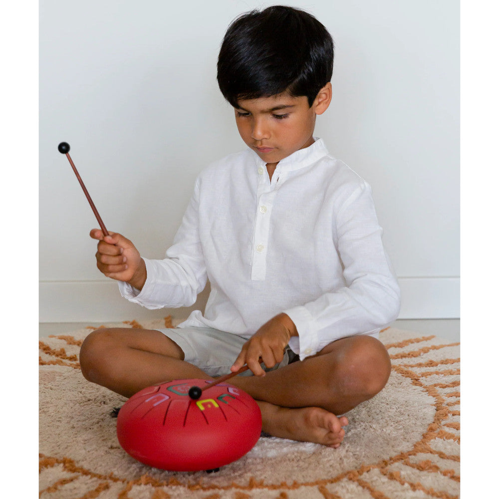 Tambú is an innovative tongue drum designed for all ages. It allows you to create harmonious melodies from the very first moment, with no prior musical knowledge required. Its colour and number coding system makes learning intuitive and fun. Tambú invites kids and adults to explore sound, feel rhythm and create music on a journey full of harmony and creativity.