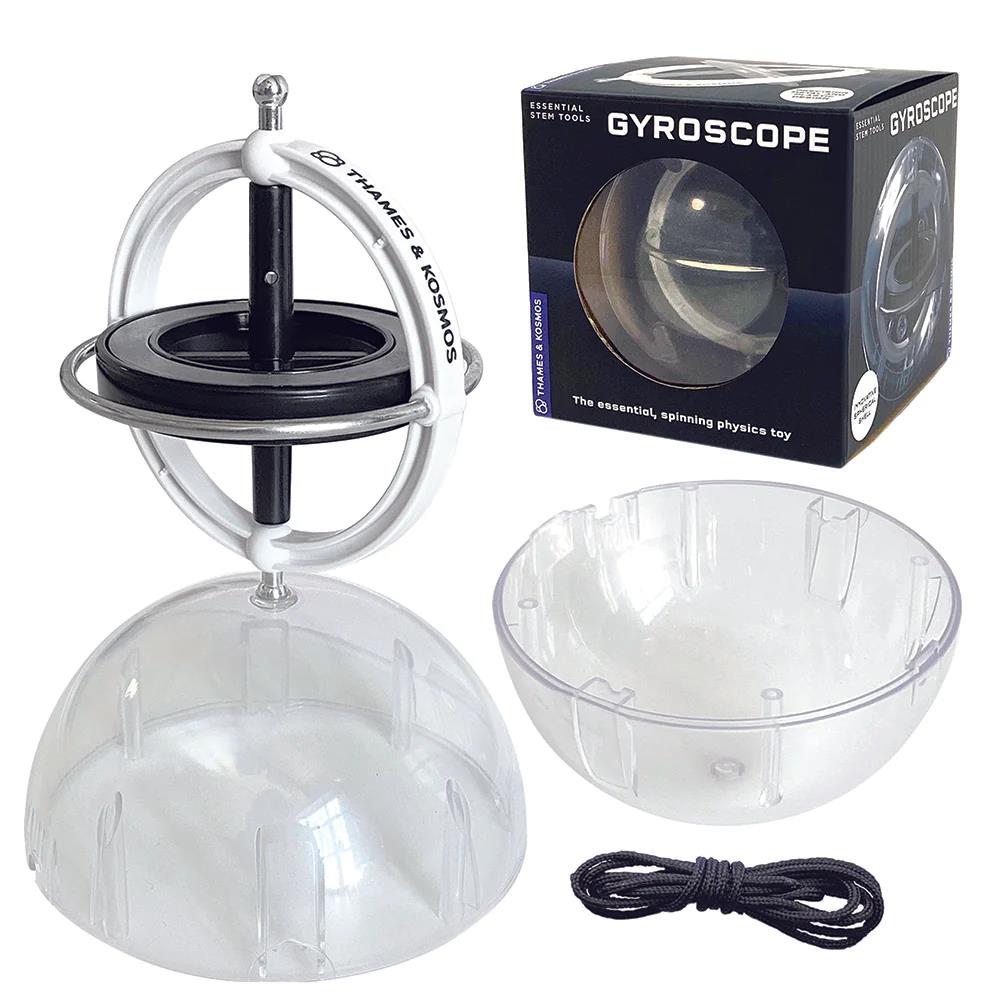 This timeless scientific instrument has been reimagined in a fresh, new design. Experiment with the gyroscope to learn about the physics of motion, forces, and gravity. Learn about gyroscopic forces, and see and feel them in action. Have fun getting your gyroscope to do classic physics tricks. Make the gyroscope balance on a tabletop, on a stand, and on a string. Spin the gyroscope inside the included clear plastic sphere and see and feel the forces acting on the sphere, which doubles as a storage case for your gyroscope.