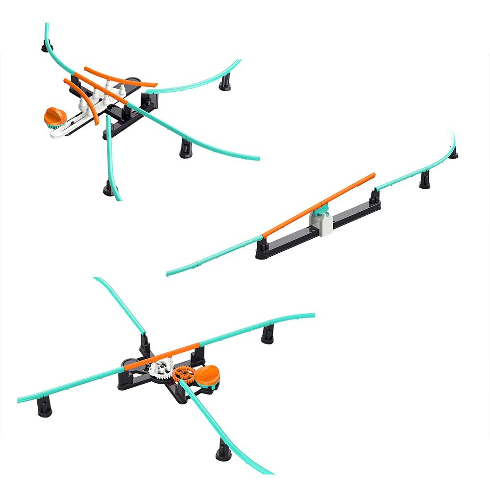 Explore the future of transportation with RoboRails! This compact robot balances on a single wheel and glides along a monorail track thanks to its fast-moving internal gyroscope and monowheel. A clever design uses ball bearings as the weights of the gimbal, which is nearly frictionless as it spins. You’ll be amazed at how steady this robot is on the track!The full-color, 32-page manual guides you through a step-by-step assembly of the robot and dozens of track layouts from over 180 durable, plastic parts. Choose any of the 26 configurations in the manual or use your imagination to invent your own! Combine the snap-together track segments with the three special connectors – the seesaw, the splitter, and the cross switch – to add twists, turns, and obstacles to your routes.A series of hands-on experiments demonstrate important physics topics such as rotational motion, acceleration, and angular momentum, bringing the science of gyroscopic forces to life right before your eyes! Bonus: learn how these principles are an integral part of the development of monorails and green transportation. Features & Benefits: