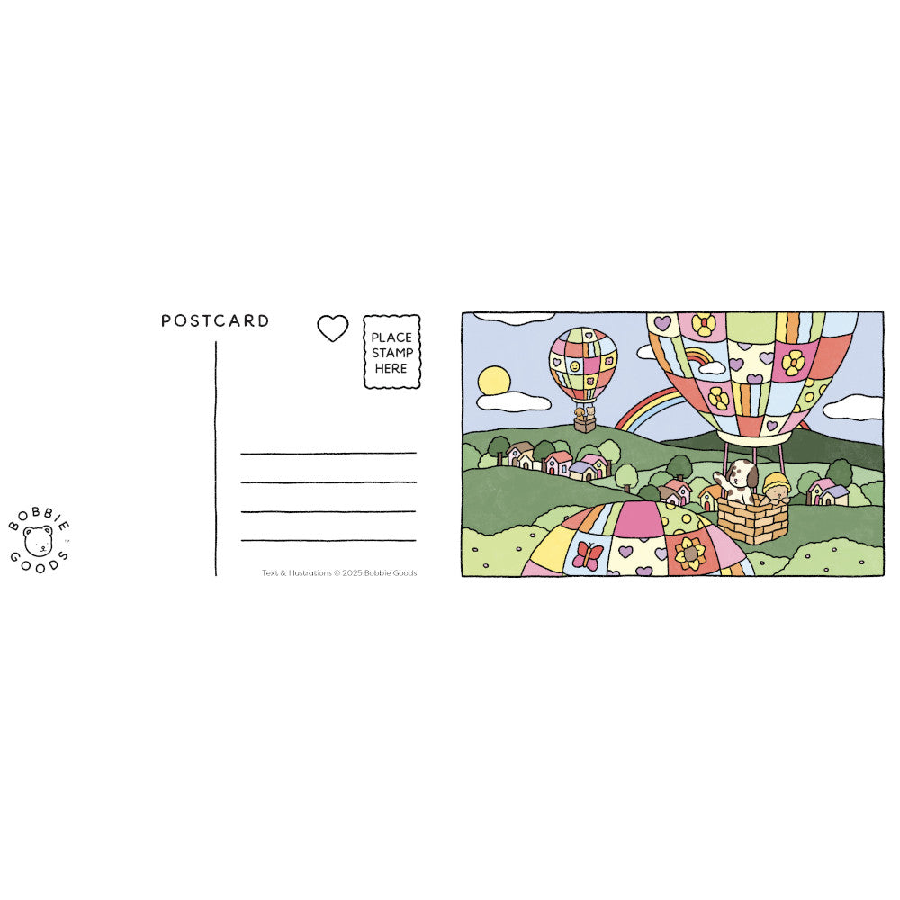 Bobbie Goods Postcard Coloring Book combines creativity and connection in a delightful collection of pullout postcards. Featuring Bobbie Goods’s signature nostalgic and whimsical art style, these postcards bring simple joys to life with scenes of hot air balloon rides, picnics, sunset strolls, and visiting the post office, with charming characters like Dr. Parmesan, Opal, Sweet Reba, Momo, and of course, Bobbie.