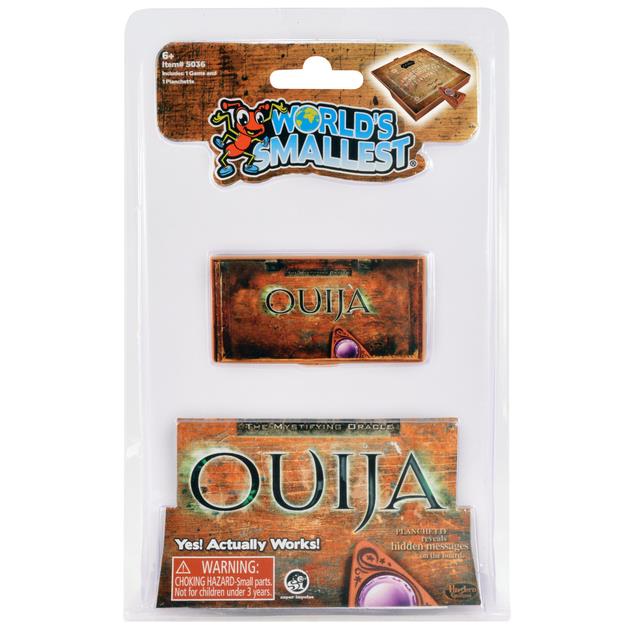 Enter the world of the mysterious and mystifying with the mini version of the classic Ouija board! The Ouija Board Game has been a staple in horror stories, pop culture, and entertainment for decades. Ask your questions and the spirit world has answers – the World’s Smallest Ouija Board Game plays just like the original full-sized version. Fitting into the palm of your hand, the game includes: Planchette, Game Board/Box and Storage Drawer. All pieces fit inside the pocket-sized case, making for easy storage and take everywhere fun!